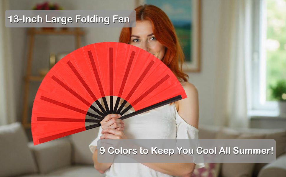 13-Inch Oversized Folding Fan - Available in 9 Bright Colors to Help You Stay Cool This Summer!