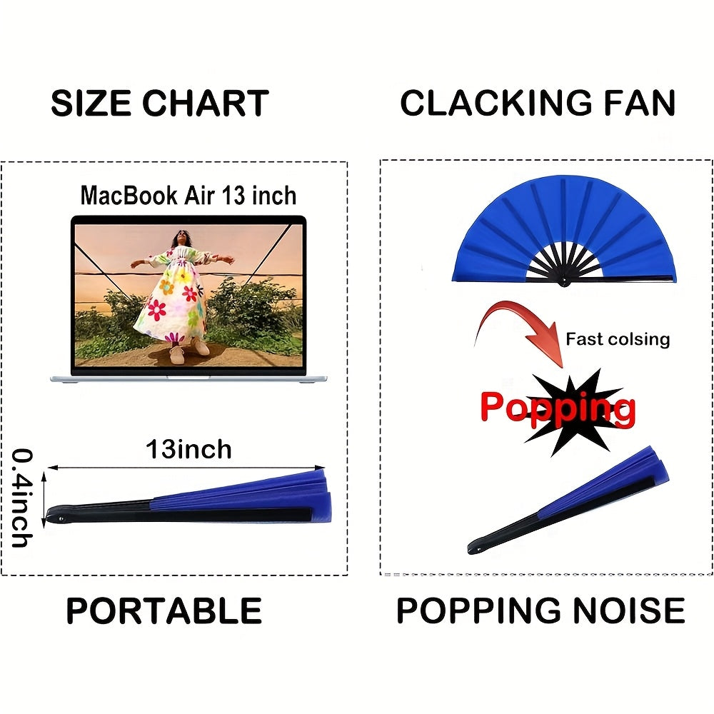 13inch Large Rave Fan - Popping Fan Clacking Fans for Line Dancing