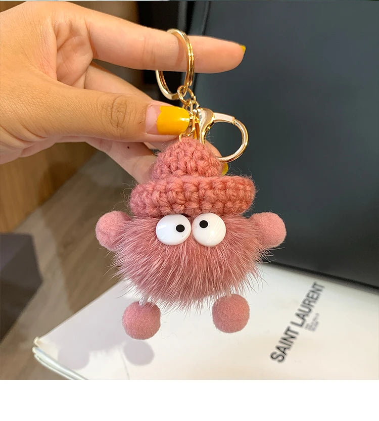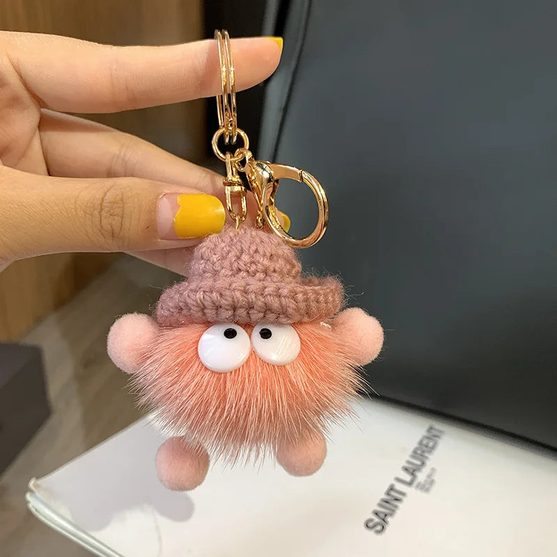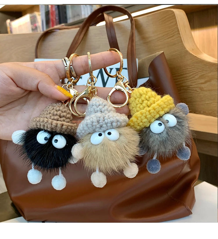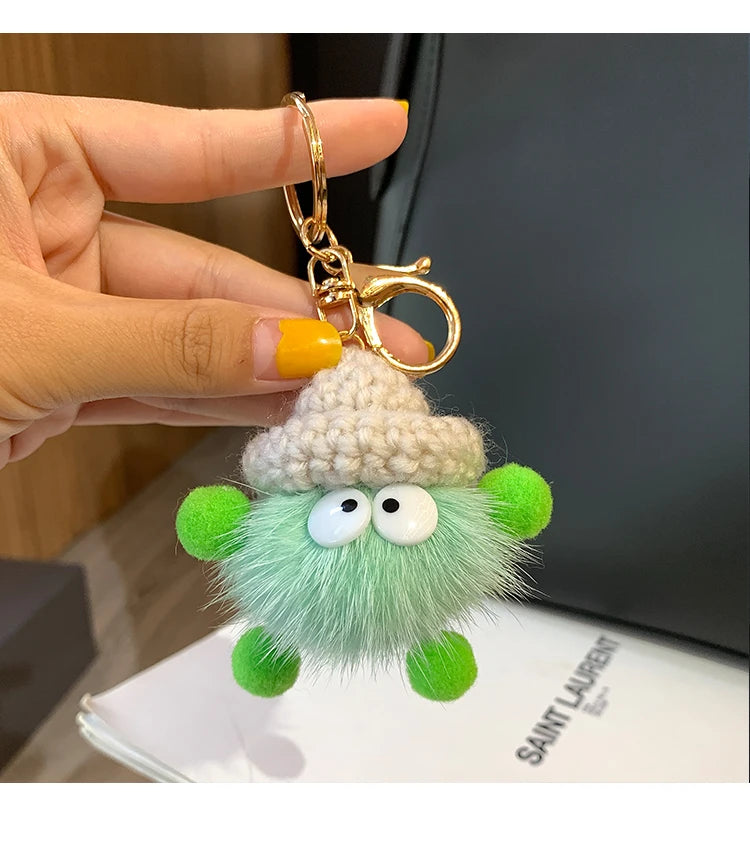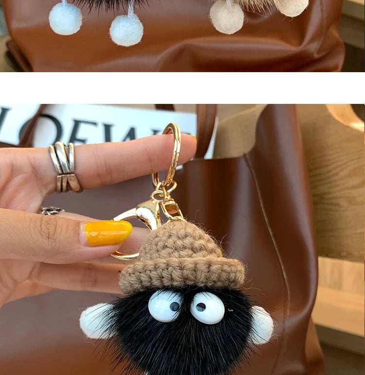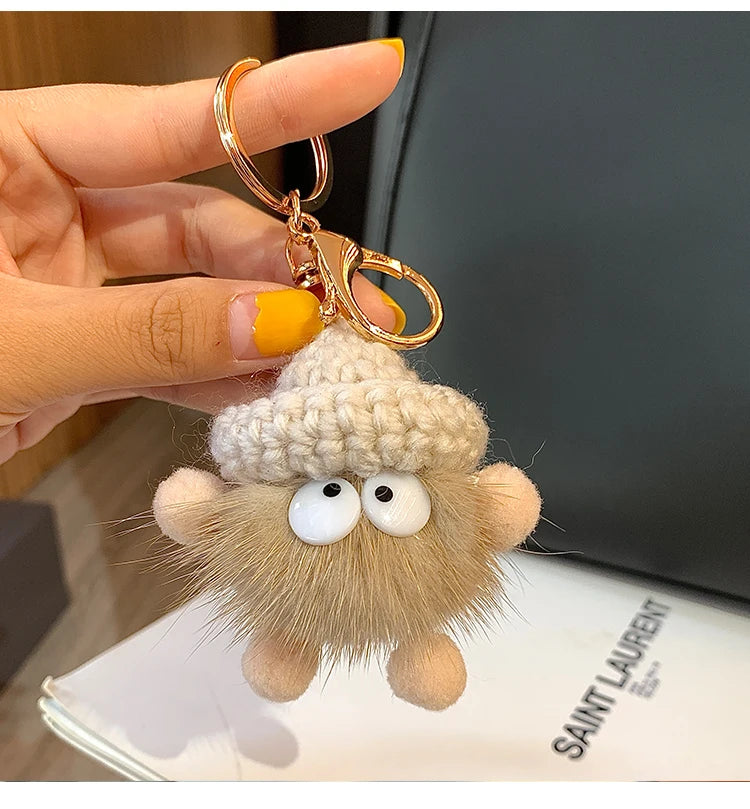 Cute Mink Fur lanyard Briquettes Keychain
