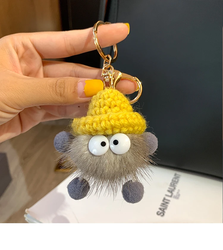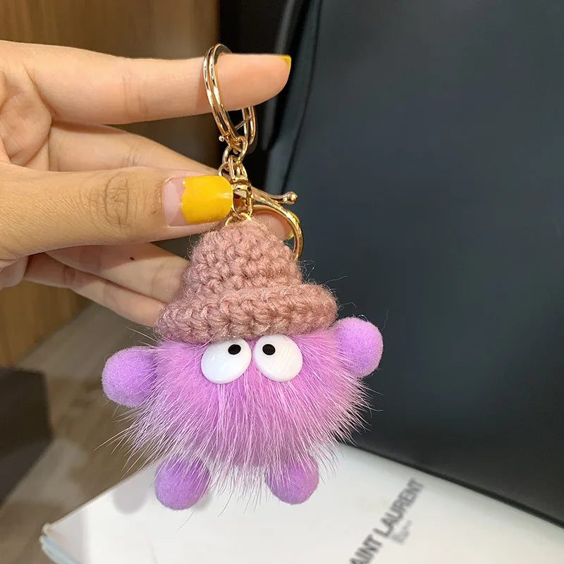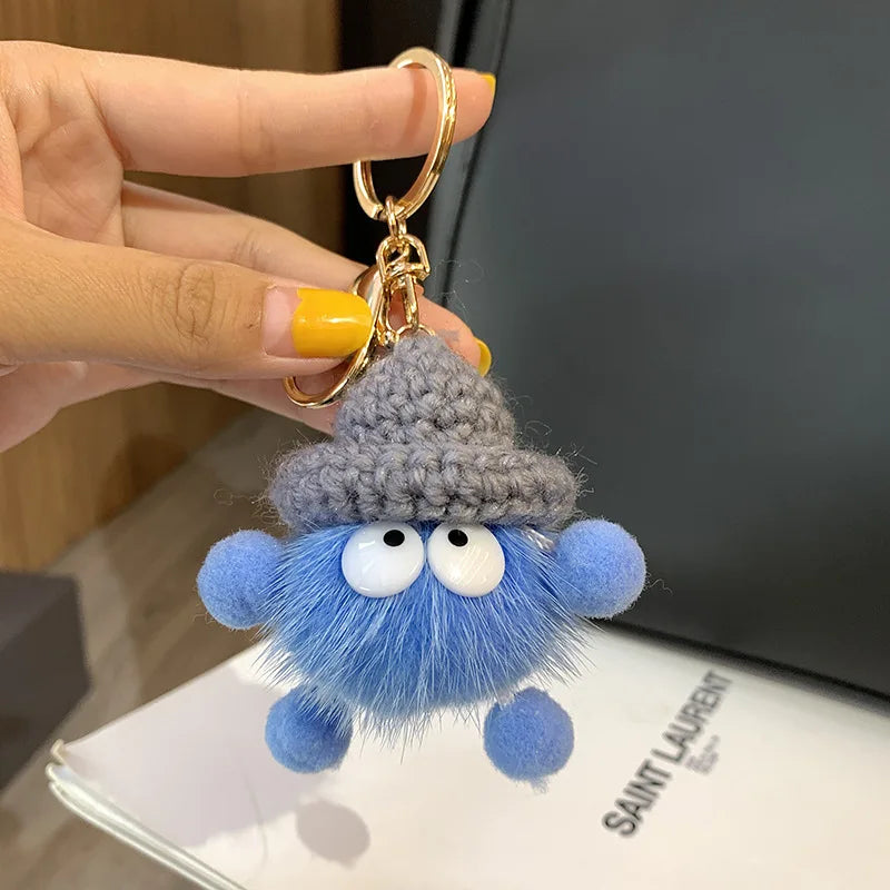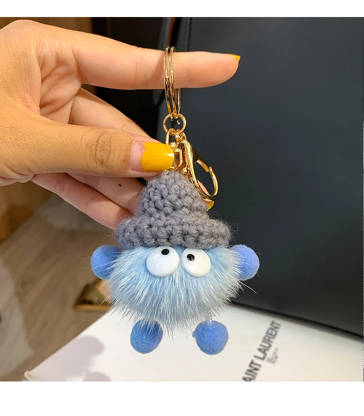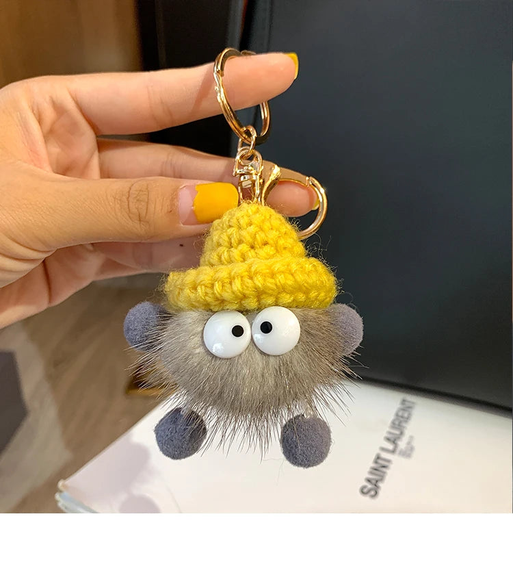 Cute Mink Fur lanyard Briquettes Keychain
