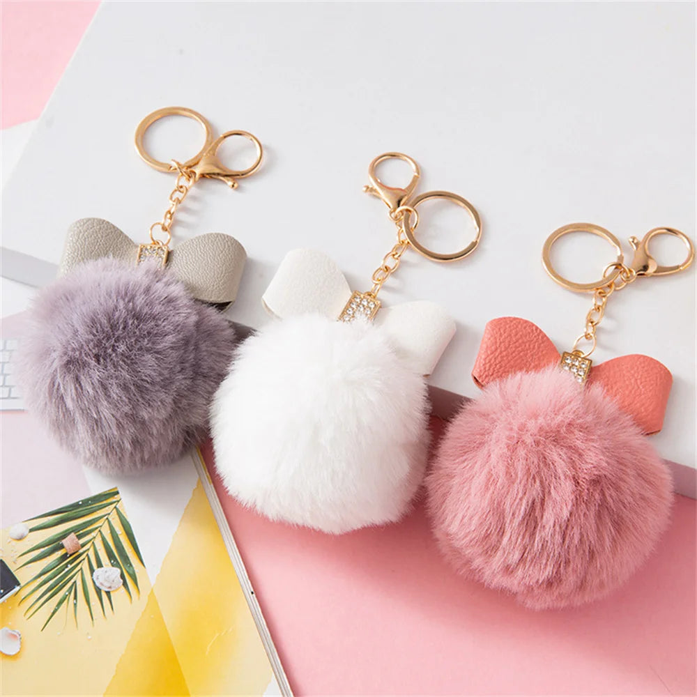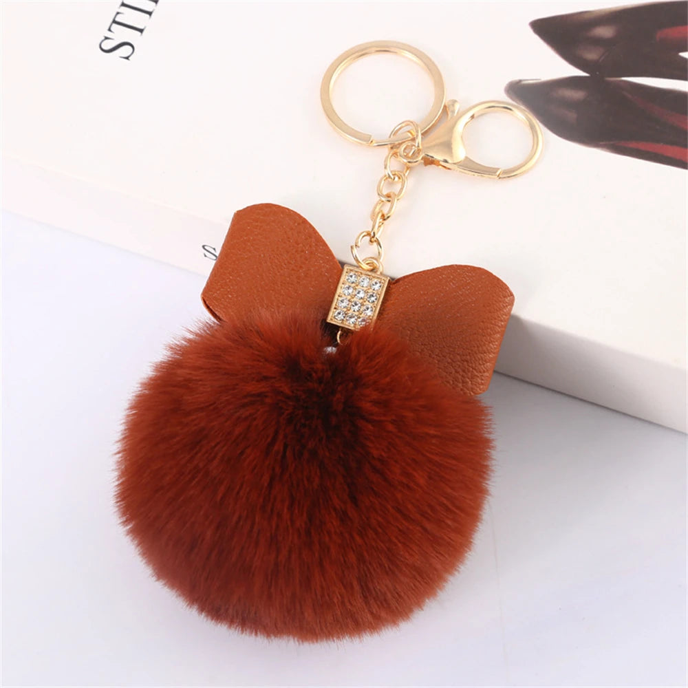 Add a touch of elegance to your handbag or car keys with this Fashion Pompom Keychain. Crafted from durable PU leather and adorned with sparkling rhinestones, the creative bow design offers a stylish accent while providing easy access and secure holding of your keys. Lightweight and versatile, it serves as a chic ornament that complements any accessory collection.
