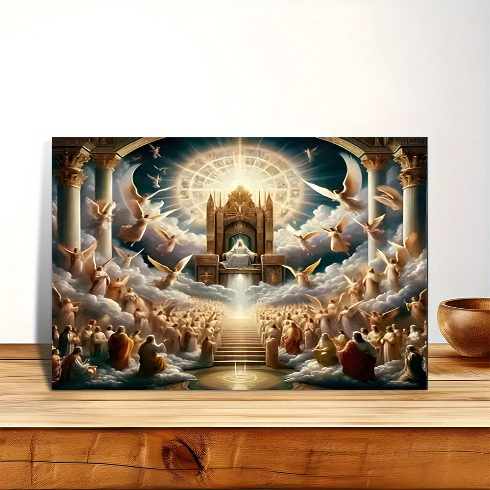 Heavenly Throne and Angels Canvas Print - Divine Light and Celestial Scene Wrapped Canvas Art with Pine Wood Frame - Fashion Theme Wall Decor for Home, Office, Bar, and Cafe - 1pc Framed Canvas Artwork for Christmas Decoratio