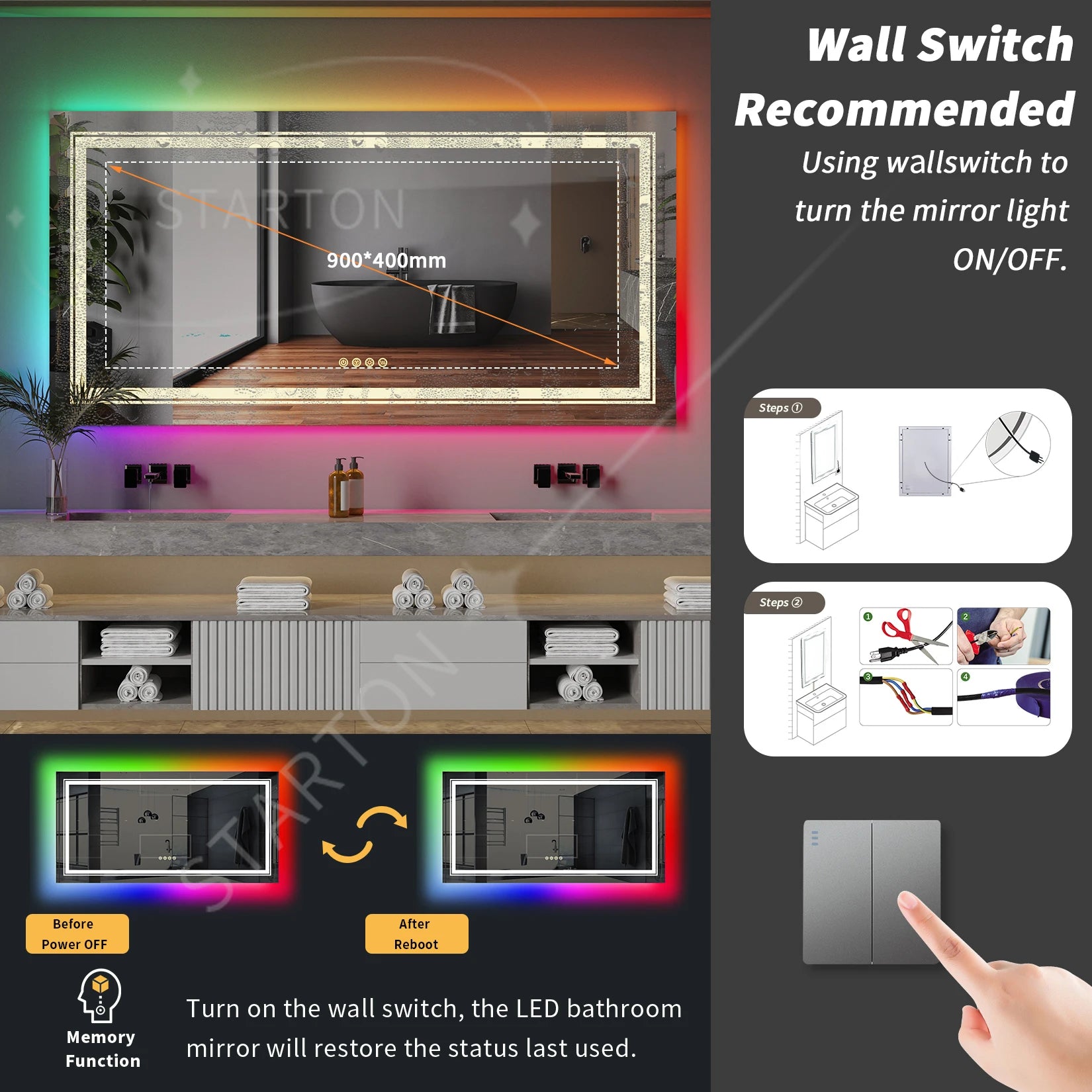 Large LED Bathroom Mirror - Intelligent Anti-Fog