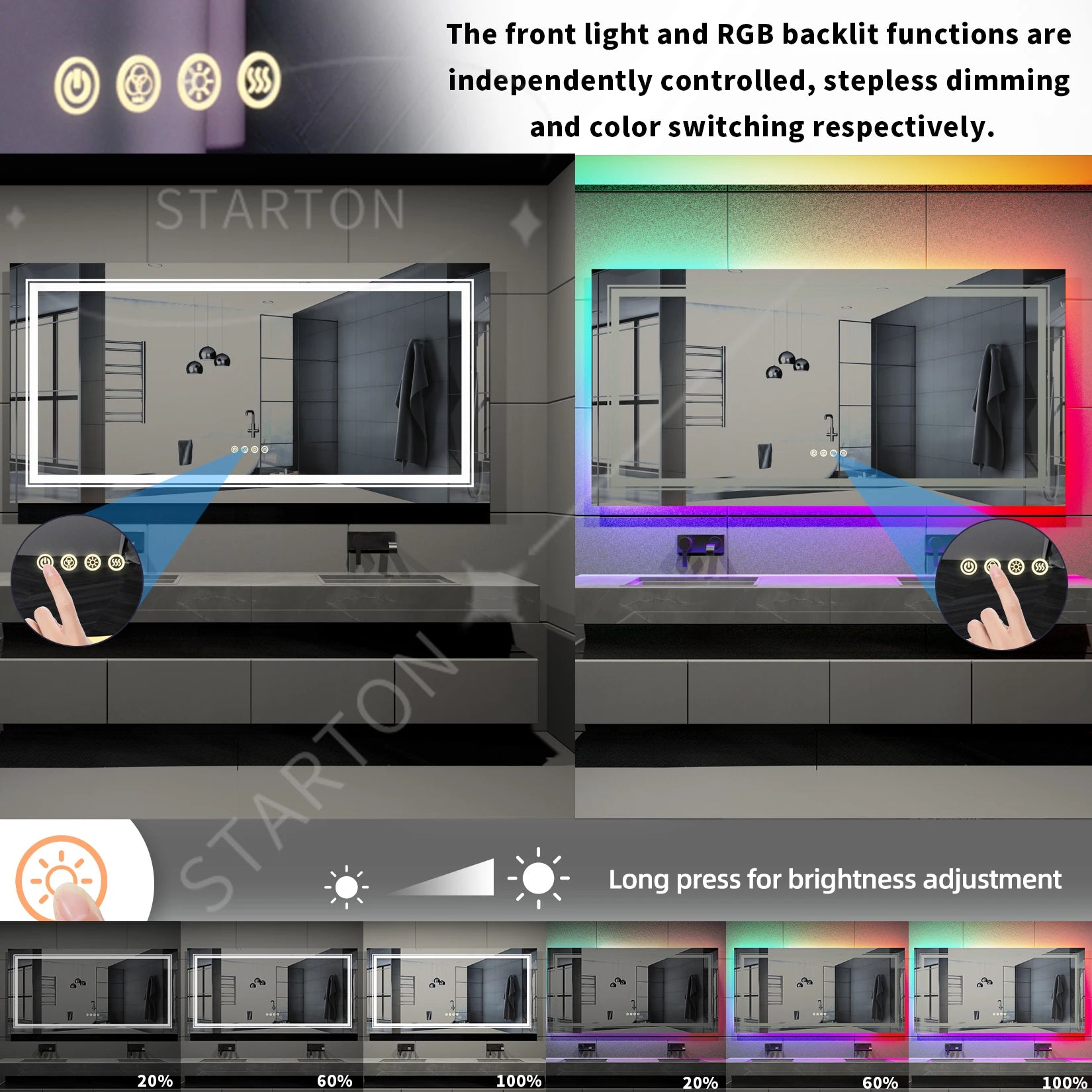 This large LED bathroom mirror features adjustable lighting and intelligent anti-fog technology, ensuring clear visibility in any humidity level. Designed for versatile installation, it works both vertically and horizontally to suit your space. Its modern LED illumination provides consistent, natural light ideal for grooming and makeup application, enhancing functionality while adding a sleek contemporary touch to your bathroom.