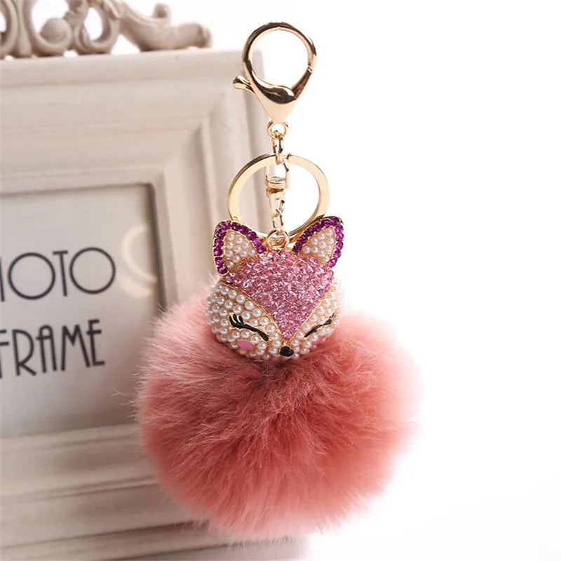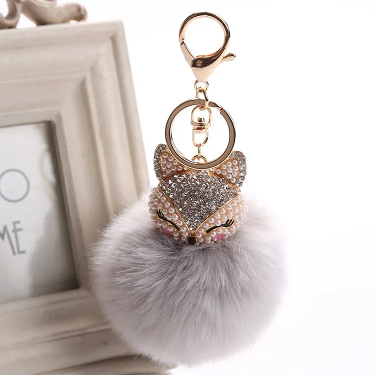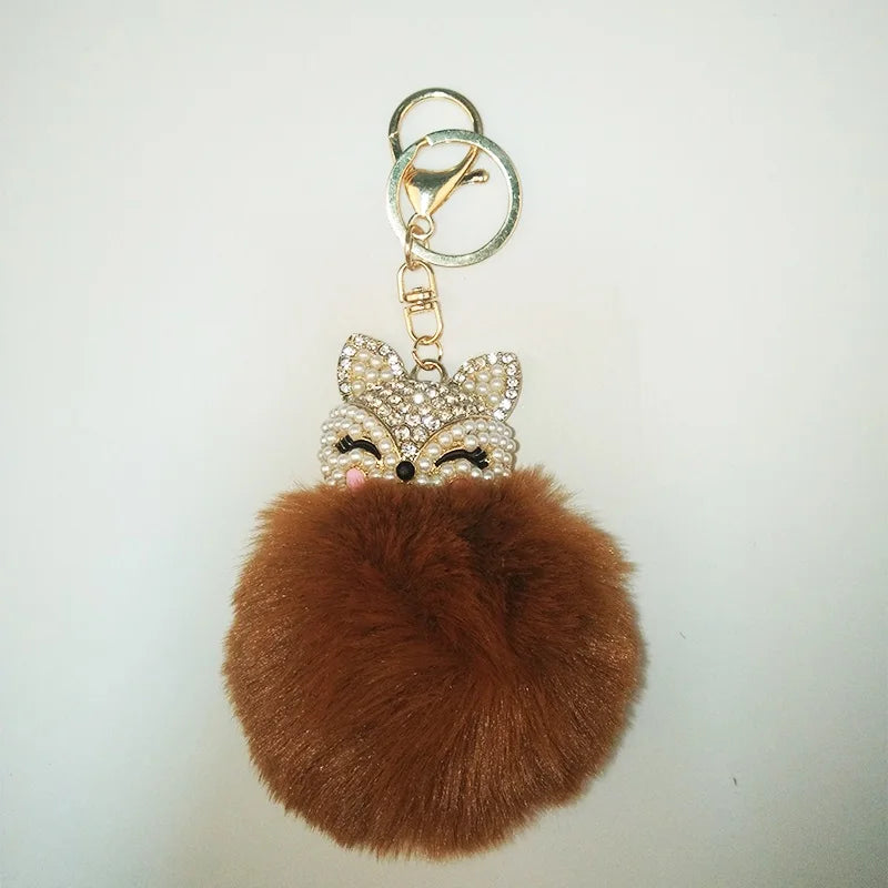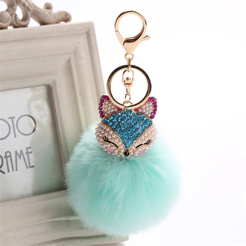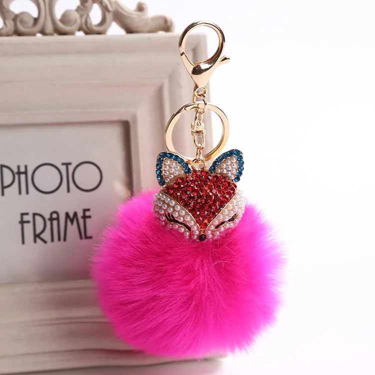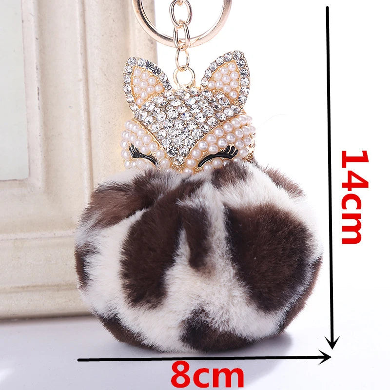 Lovely Crystal Faux Fox Rabbit Fur Keychains
