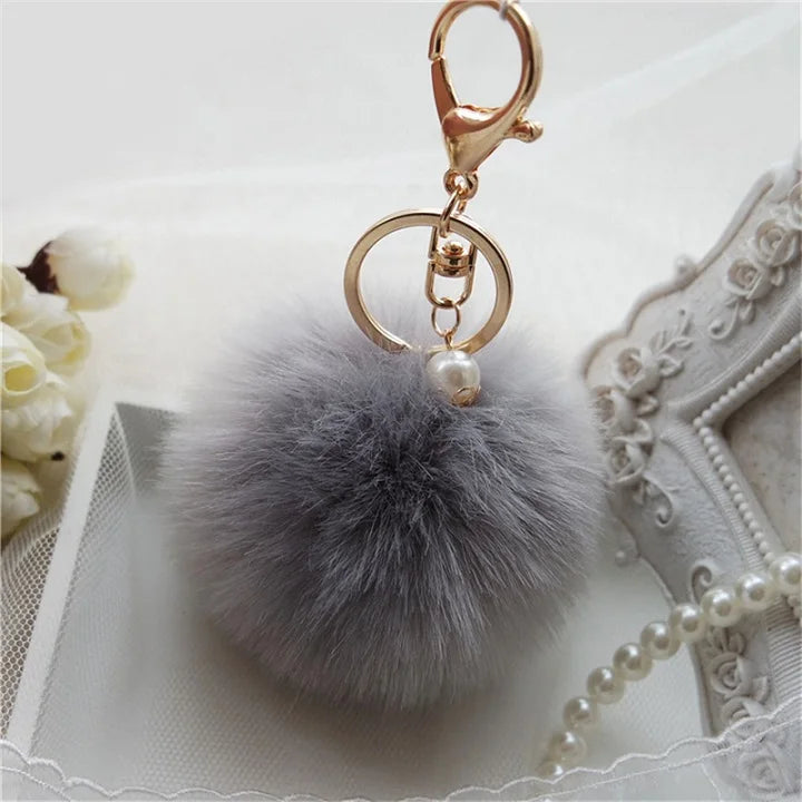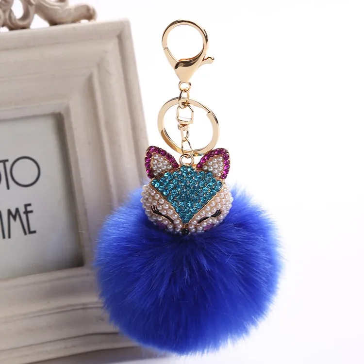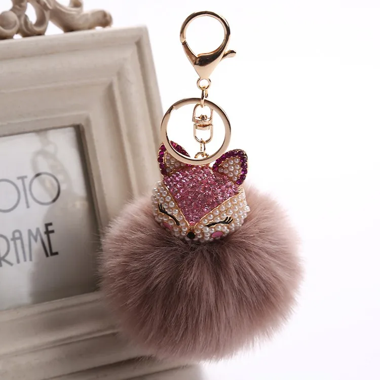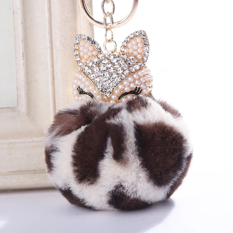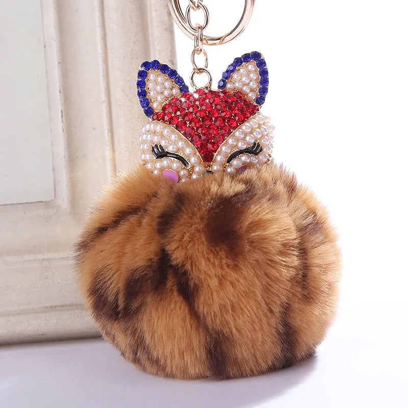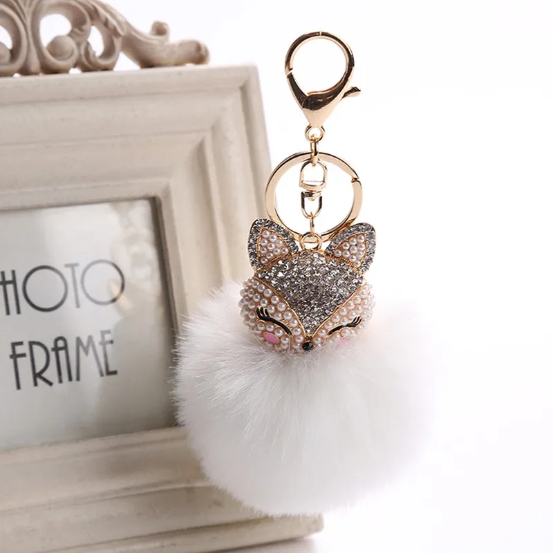 Lovely Crystal Faux Fox Rabbit Fur Keychains