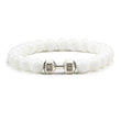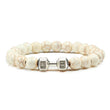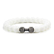 Crafted with genuine natural volcanic stone, this bracelet exudes a timeless charm that seamlessly complements any outfit. With a matte black and white bead design accented by dumbbell beads, it's the perfect accessory for both men and women who value fitness and style.