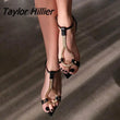 These Open-Toe High-Heeled Sandals are designed for parties and banquets, featuring a stylish metal decorative design and pointed toe for a glamorous look. With a 12cm stiletto heel and large size options, these sandals are the perfect addition to any outfit. Elevate your style with these gladiator-inspired shoes.
